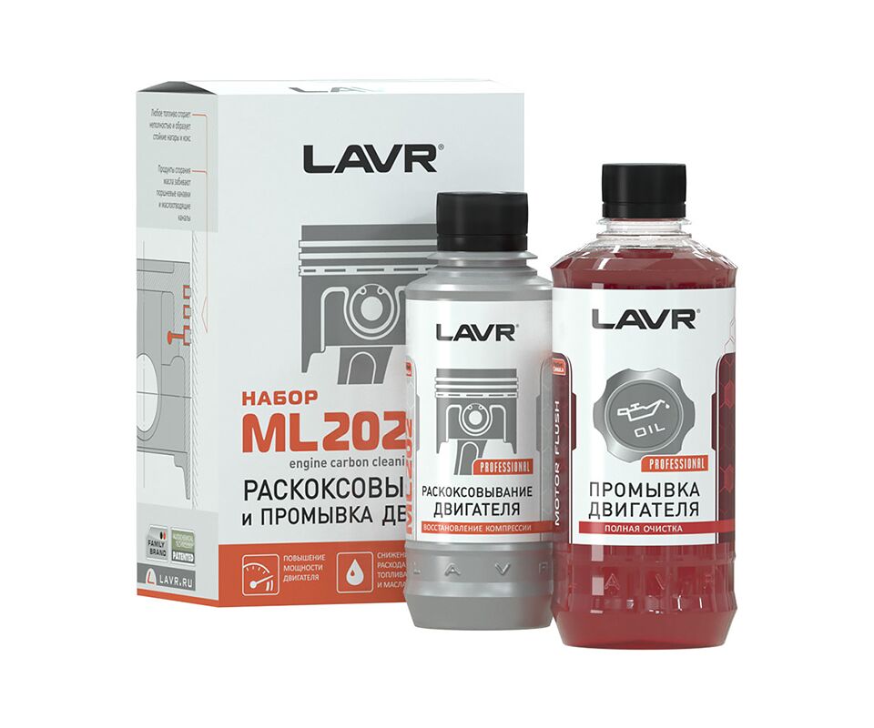 Набор Раскоксовка двигателя ML202 + Промывка двигателя для двигателей до 2 литров – это сочетание двух продуктов для очистки ЦПГ и системы смазки от смолисто-лаковых и нагарных отложений. Рекомендуется к применению при повышенном расходе масла, снижении мощности, ухудшении приемистости и динамики, дымности, регулярной эксплуатации в городских условиях, а также в качестве профилактики по мере роста пробега.
