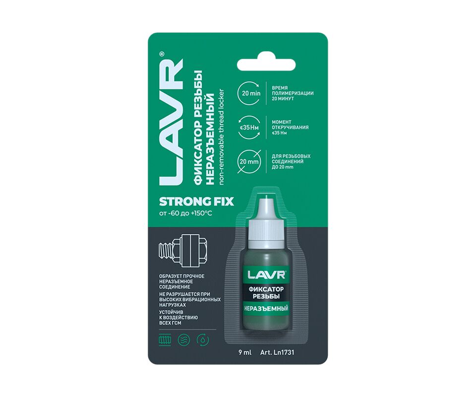 Состав герметизирует и фиксирует резьбовые соединения, требующие демонтажа только в случае капитального ремонта. Препятствует саморазвинчиванию деталей при вибрационных и ударных нагрузках. Быстро полимеризуется, устойчив к воздействию технических жидкостей. Применяется на любых резьбовых соединениях из черных металлов.