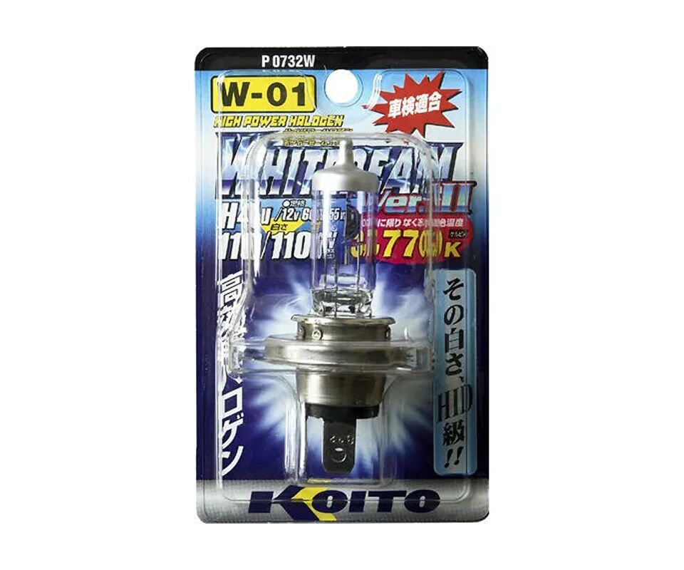 Koito Whitebeam H4U 12V 60/55W (110/110W) - галогенная лампа головного света повышенной яркости. Свет, как от ламп с мощностью 110W.