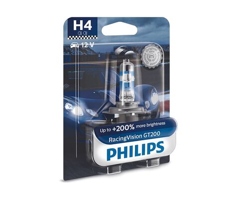 - Новый уровень видимости и удовольствия от вождения. Сверхяркие лампы Philips RacingVision GT200 являются аналогом спортивного головного света в формате, пригодном для использования на дорогах общего пользования. Они обеспечивают кристальную четкость светового луча и имеют увеличенную на 200 % яркость. Усовершенствованная конструкция лампы гарантирует улучшенную освещенность дорожного полотна для более безопасного и азартного вождения.