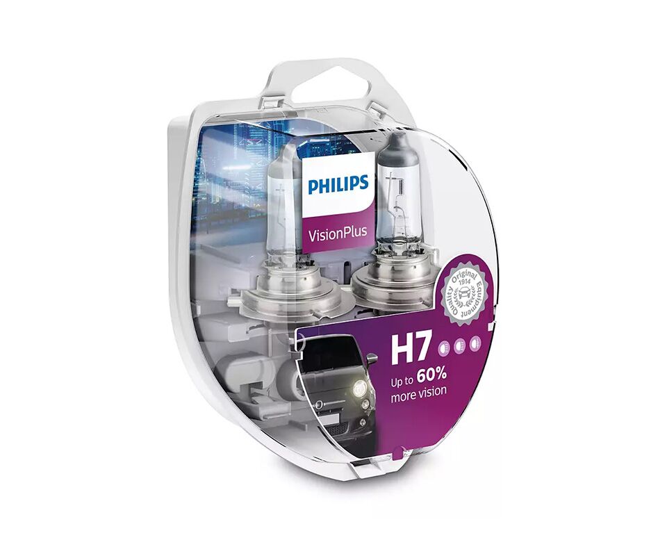 Лампы Philips VisionPlus для автомобильных фар обеспечивают на 60 % улучшенный обзор: водитель может видеть дальше, благодаря чему повышаются безопасность и комфорт. Лампы VisionPlus — это высокая производительность и доступная цена. Правильный выбор современного требовательного водителя.