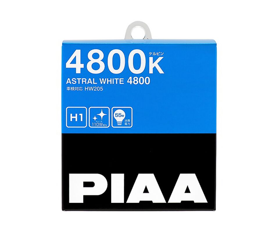 PIAA Astral White H1 12V 55W - галогенная лампа головного света, которая излучает белое свечение цветовой температуры 4800 K. При потребляемой мощности в 55W, реальная светоотдача составляет 110W.