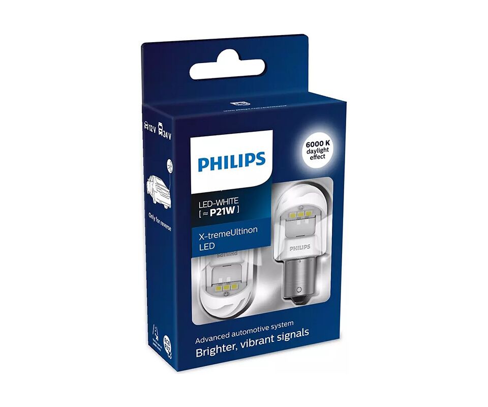 Позаботьтесь о своей безопасности и внешнем виде автомобиля: установите светодиодные лампы Philips X-tremeUltinon gen2 [~P21W] для фонарей заднего хода с ярким светом. Эти мощные лампы с точно направленным световым лучом отличаются стильным современным дизайном.