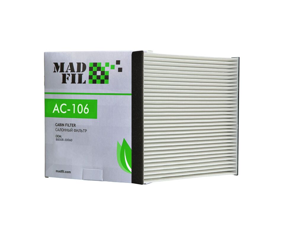 Салонные фильтры MADFIL не допустят попадания в салон автомобиля вредных примесей, пыли, бактерий, микробов, пыльцы, спор грибков и будут надежно защищать здоровье автовладельца на протяжении всего срока службы. Фильтры MADFIL помогают легко справиться и с такой проблемой, как пыль и налёт на лобовом стекле. Находясь в салоне автомобиля, водитель вдыхает в разы больше вредных веществ, чем пешеход у обочины, поэтому к выбору фильтра и его замене стоит подходить со всей ответственностью.