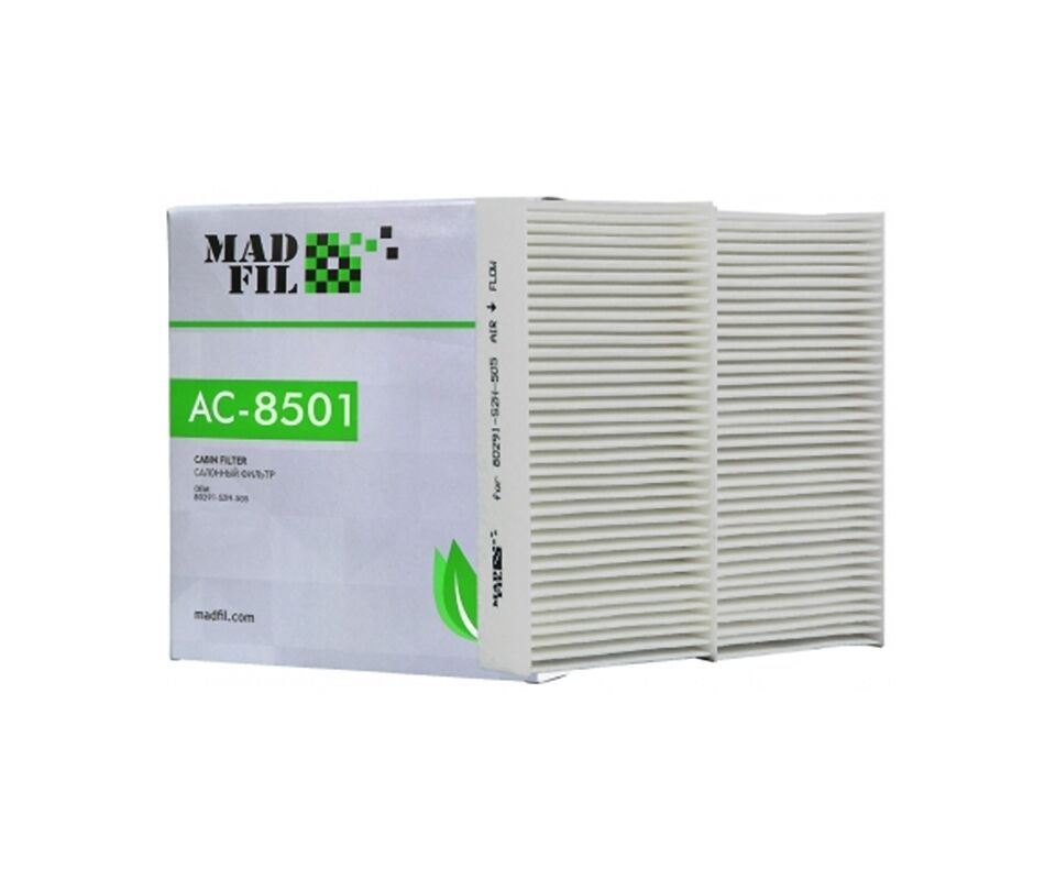 Салонные фильтры MADFIL не допустят попадания в салон автомобиля вредных примесей, пыли, бактерий, микробов, пыльцы, спор грибков и будут надежно защищать здоровье автовладельца на протяжении всего срока службы. Фильтры MADFIL помогают легко справиться и с такой проблемой, как пыль и налёт на лобовом стекле. Находясь в салоне автомобиля, водитель вдыхает в разы больше вредных веществ, чем пешеход у обочины, поэтому к выбору фильтра и его замене стоит подходить со всей ответственностью.