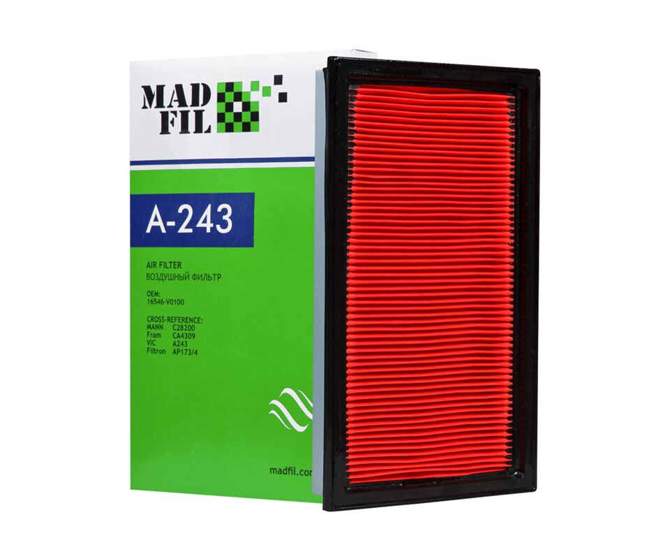 Воздушные фильтры MADFIL изготовлены из современных фильтрующих материалов и обладают большим рабочим ресурсом, ведь от них напрямую зависит какой воздух будет попадать в двигатель автомобиля. Фильтры MADFIL задерживают различные твёрдые частицы такие, как сажа, минеральная пыль, органические остатки и достигают практически 100% эффективности.