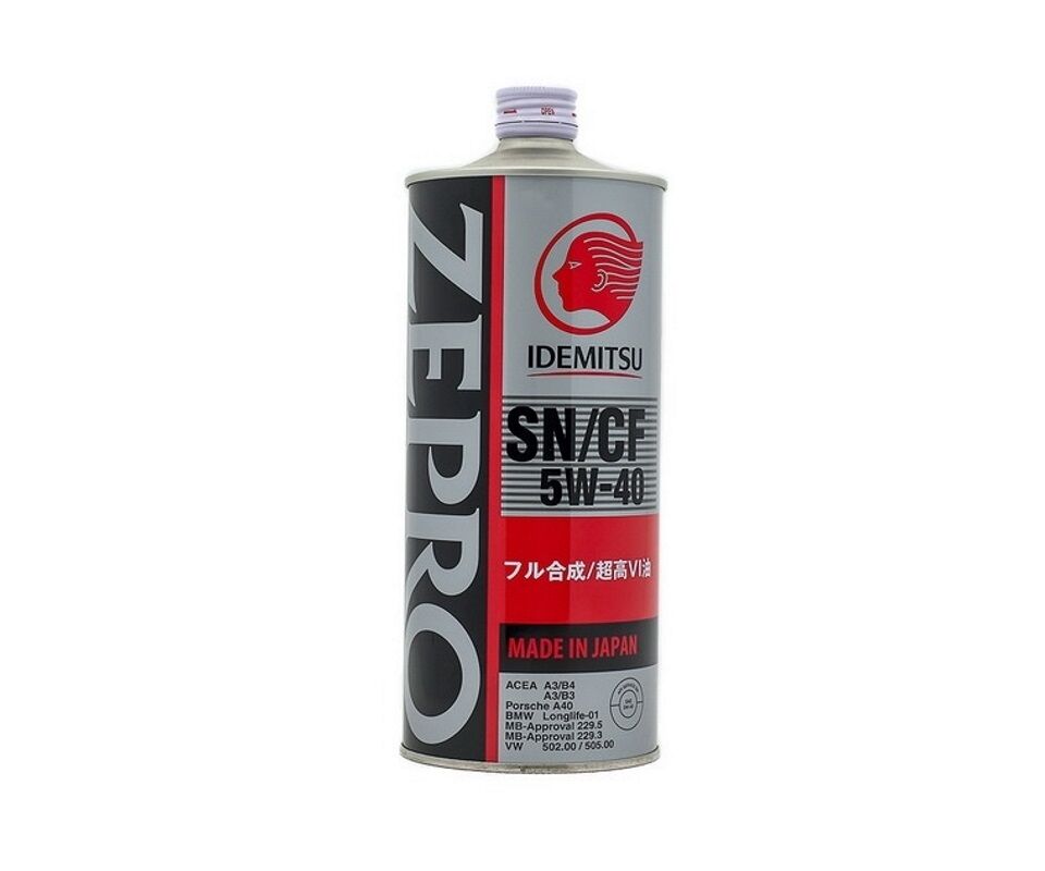 Idemitsu Zepro Euro Spec 5W-40 SN/CF Fully-Synthetic – полностью синтетическое универсальное и всесезонное моторное масло. Имеет высокое качество за счет эффективного пакета присадок и разработано на основе технологии гидрокрекинга. Получило одобрение для применения от ведущих европейских производителей автомобилей.