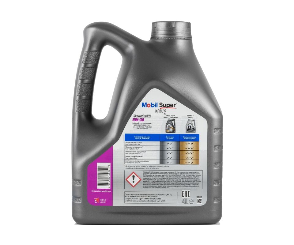 Mobil Super™ 3000 x1 Formula FE 5W-30 обеспечивает длительный срок службы двигателя и улучшенную защиту в широком диапазоне температур при применении в автомобилях различных типов и годов выпуска, включая легковые автомобили, легкий коммерческий транспорт и микроавтобусы.