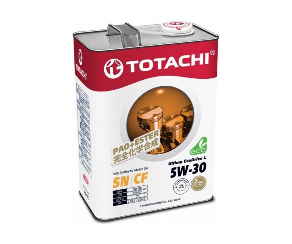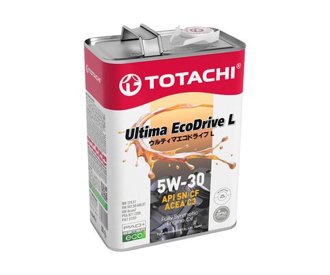 TOTACHI ULTIMA ECODRIVE L 5W-30 – полностью синтетическое (ПАО + эстеры) моторное масло с высокими рабочими характеристиками, разработанное для использования в современных бензиновых и дизельных двигателях, оснащенных современными системами контроля эмиссии. Премиальный продукт уровня Mid SAP, предназначенный для современных четырехтактных бензиновых и дизельных двигателей легковых автомобилей и легких коммерческих грузовиков, оснащенных трехкомпонентными каталитическими системами (TWC). Обеспечивает превосходную производительность и защиту в сочетании с потенциальной топливной экономичностью. Продукт дает отличную защиту в жестких режимах эксплуатации «старт-стоп».