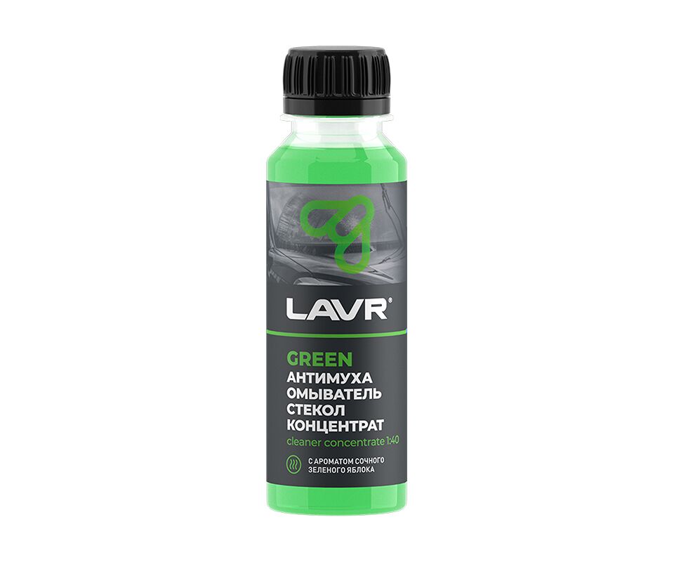 Омыватель стекол Антимуха Green LAVR – концентрат жидкости для очистки стекол и фар автомобиля. Средство с повышенной моющей способностью быстро удаляет все виды загрязнений.  Экономично расходуется и обладает легким яблочным ароматом.